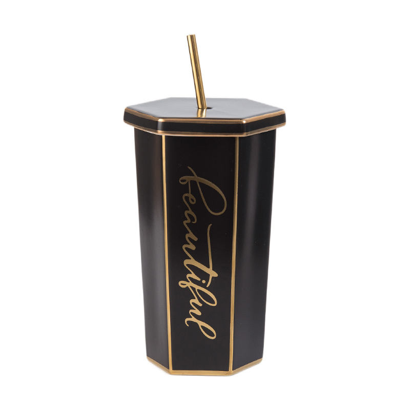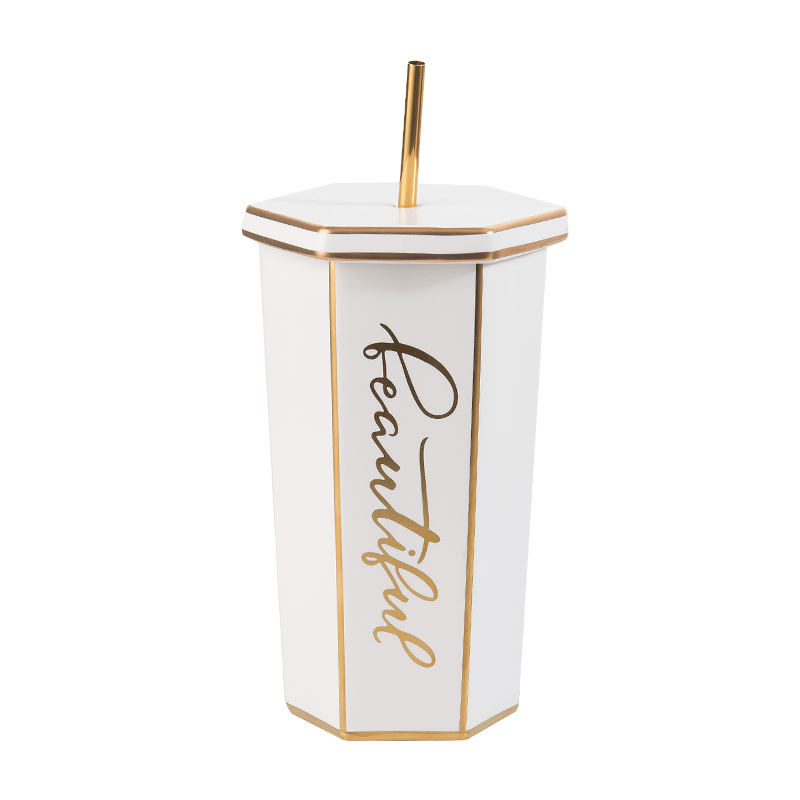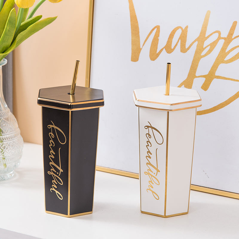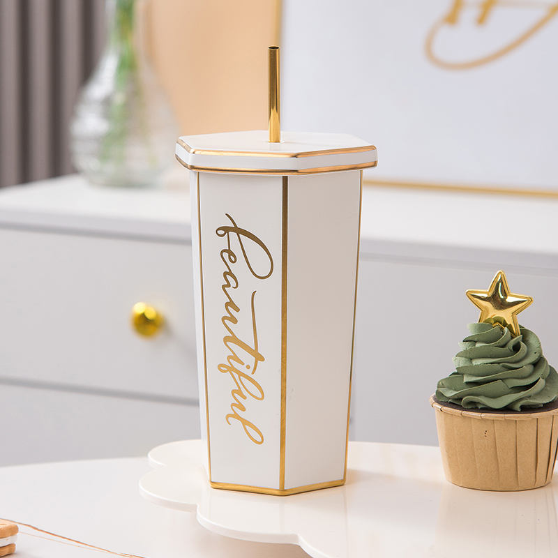 Large Capacity Rhomboid Gold-Rimmed Drinking Cup Sublimation Cups Ceramics Personalized Mugs Drink Cups With Lids and Straws