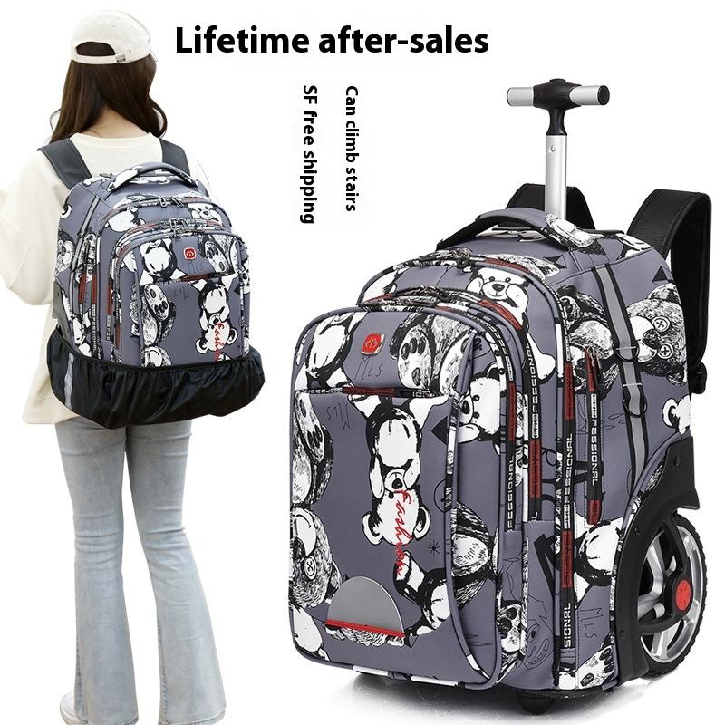 Large Capacity Schoolbag Multi-use Student Luminous Backpack Big Wheel Trolley Bag Roller Bag Spinner Suitcase Luggage