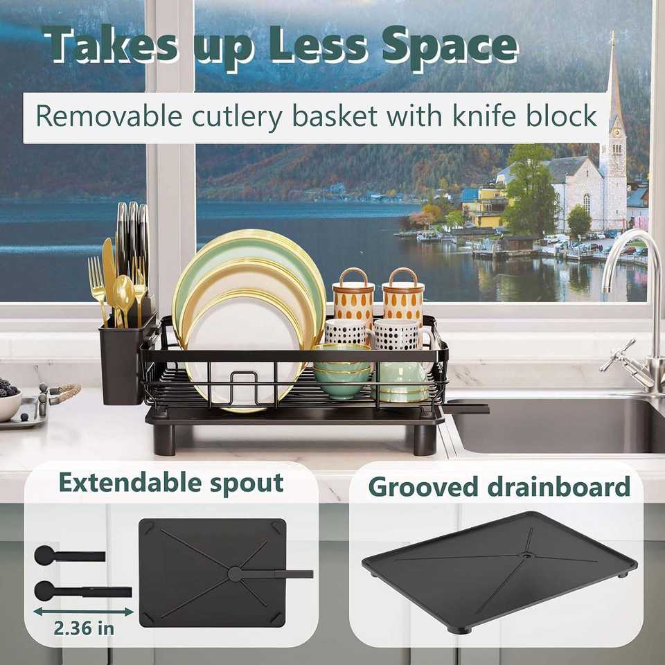 Large Capacity Steel Dish Drying Rack with Drainer Board Kitchen Cutlery Storage Organizer and Utensil Holder