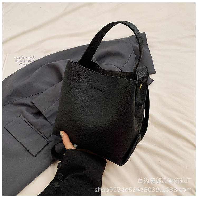 Large Capacity Textured Handbag for Women 2025 New Trend Simple Bucket with Wide Strap Single Shoulder Crossbody Bag