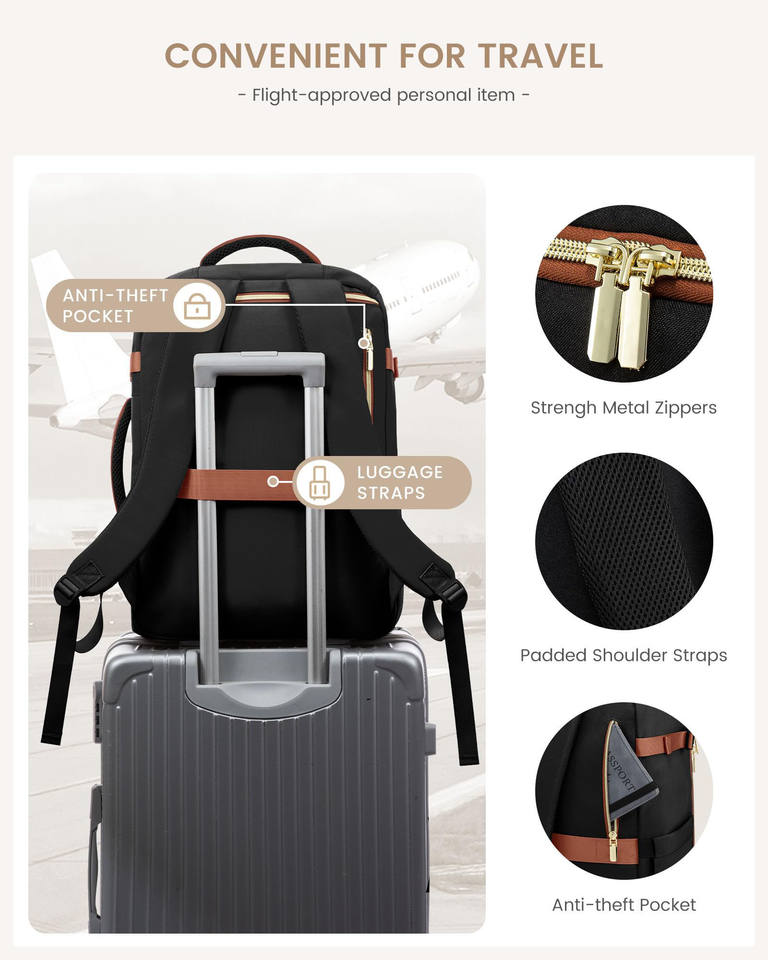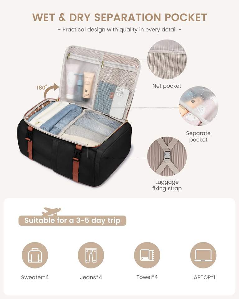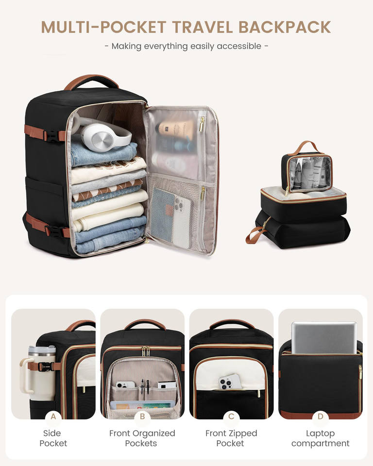 Unisex Large Capacity Travel Backpack Waterproof Oxford Material with Zipper Closure Flight Approved Personal Item Packing Cubes