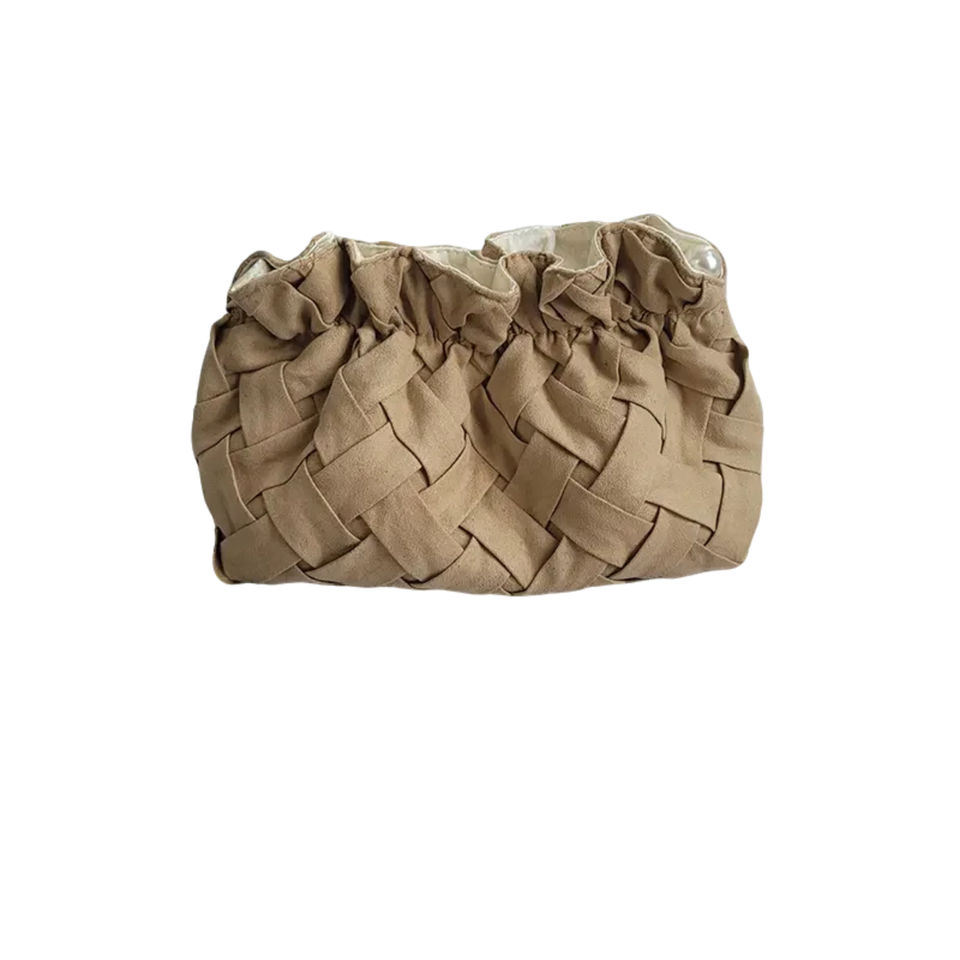 Large-Capacity Velvet Plaid Style Zipper Closure Weaved Travel Storage Bag Fashionable Cherry Bow Pattern Female Cosmetic Bag