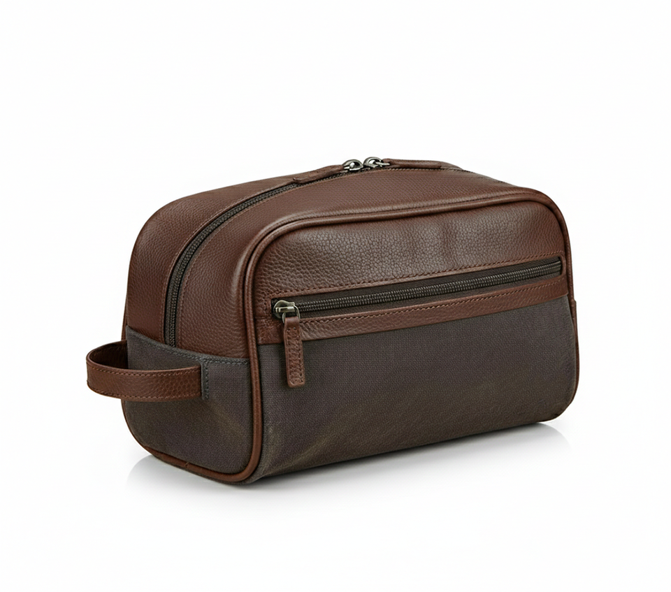 Large Capacity Vintage Canvas Wash Bag with Zipper Closure Portable Makeup Shaving Storage Men's Toiletry Bag