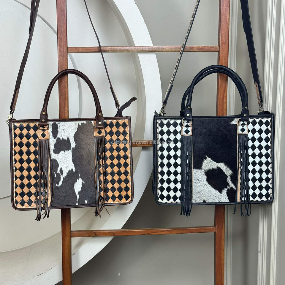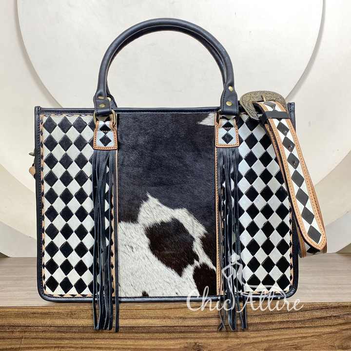 Product name:Hand Tooled Checkered Leather Tote Bags