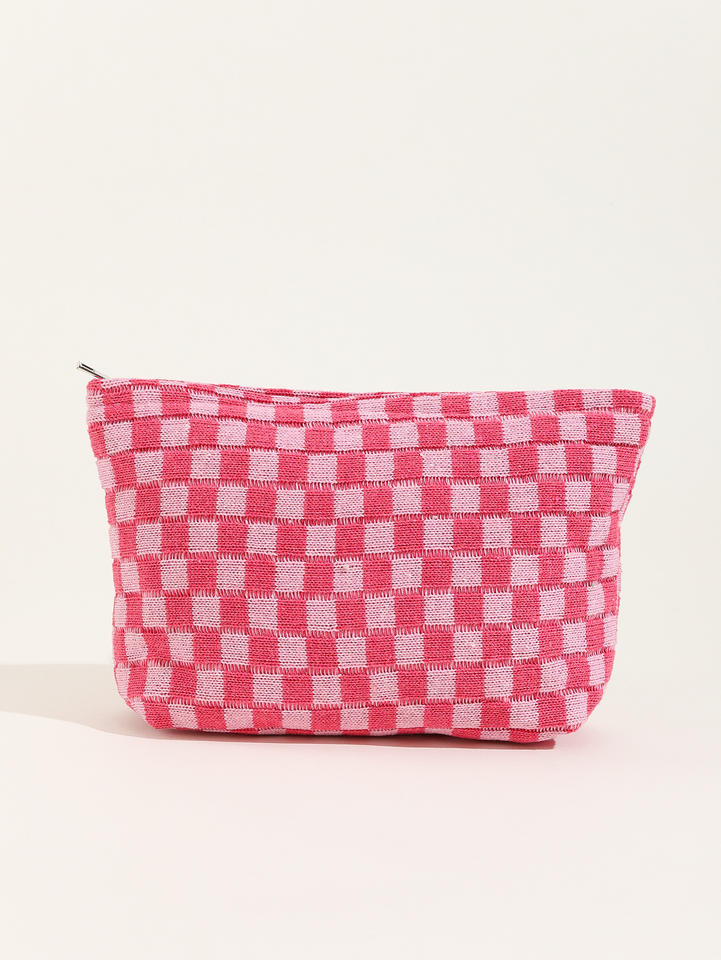 Large Capacity Yarn Checkerboard Makeup Bag Knitted Pencil case Storage Plaid Toiletry Bag Portable Cosmetic Bag