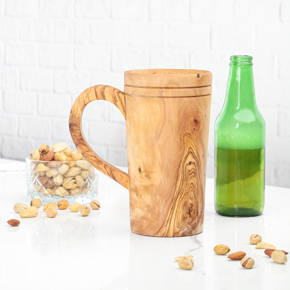 Large Classic Wooden Mug Handmade with Handle-ArtisRaw DT023 for Wine & Camping