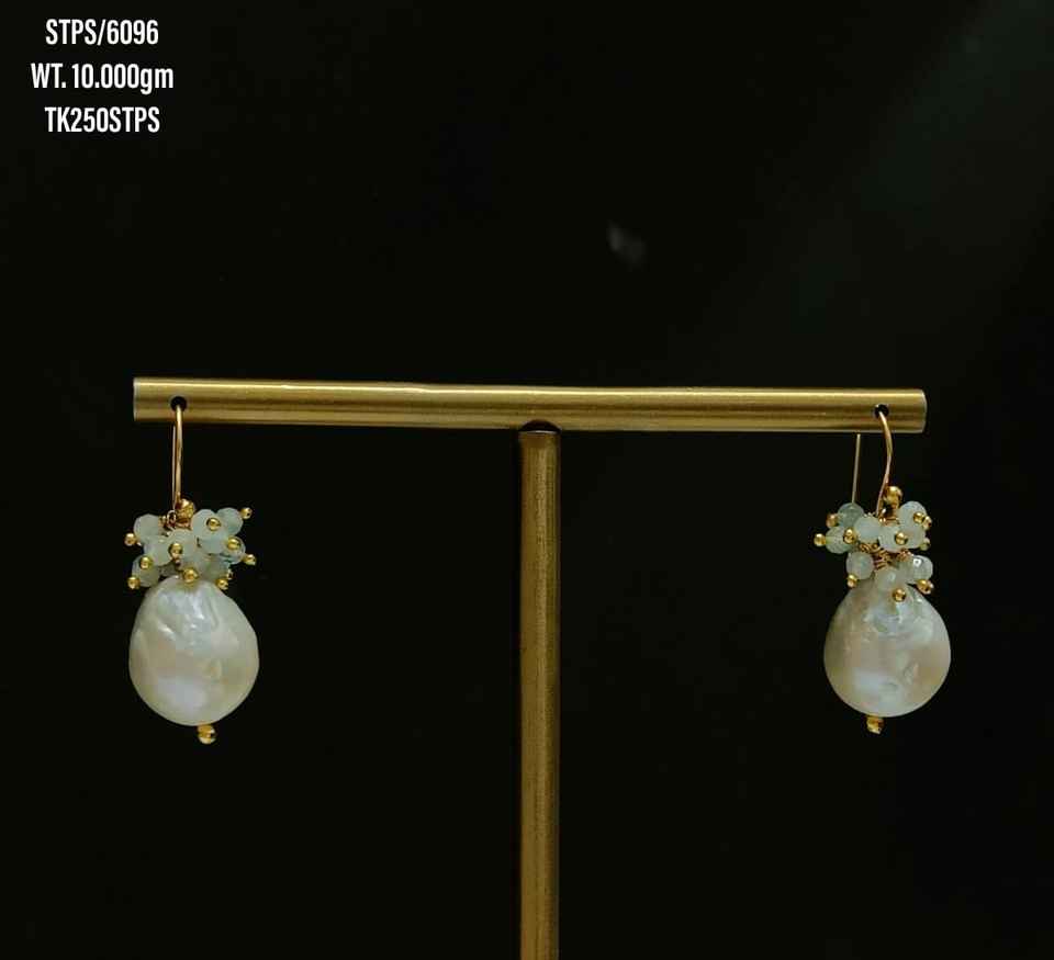 Large Coin Pearl Earrings Gold Plated Gemstone Beads Cluster Earrings Handcrafted Silver Wire Hanging Earrings