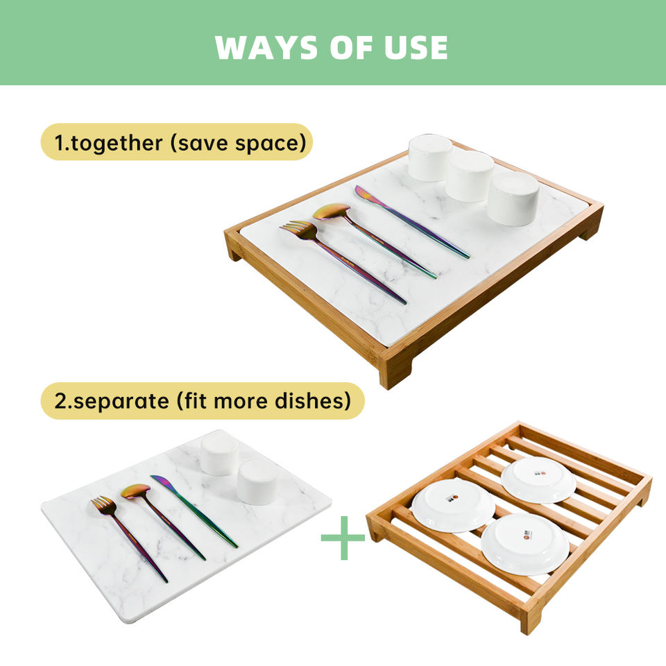 Large Collapsible Bamboo Stand Pad Fast Drying Mat Board with Instant Dry Diatomaceous Earth Mat Stone Dish for Kitchen Counter