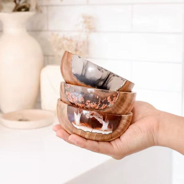 Large Contains Basin Wooden Soup Bowl A-One Quality Wooden Resin Dessert Bowl Epoxy Resin Customized Design Food Feeding Bowl