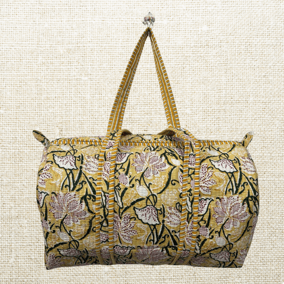 Large Cotton Floral Duffle Bags Block print Quilted Fabric Weekender Bags for Women Holiday Gifts Handmade Colorful Travel