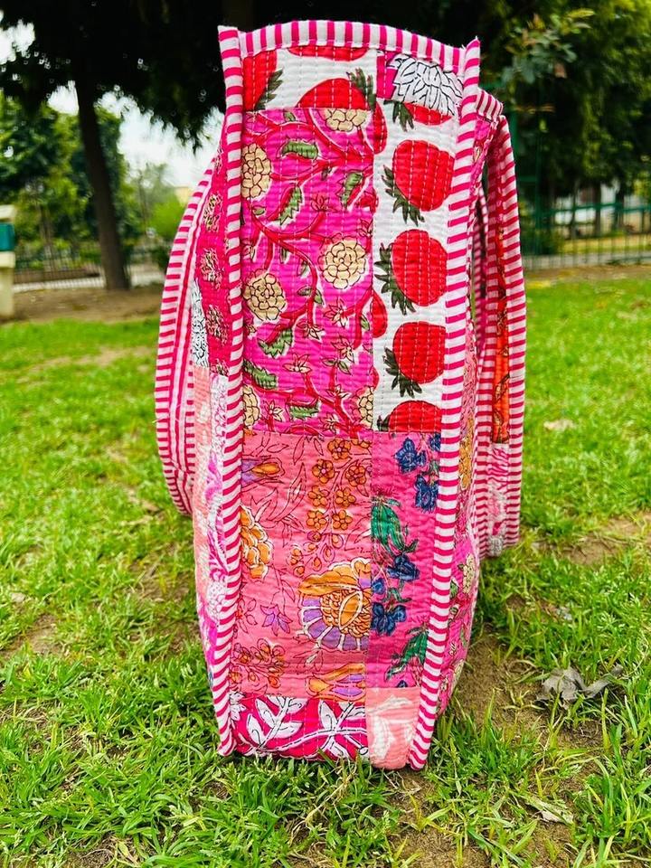 Large Cotton Quilted Tote Bags Bohemian Fashion Hand Luggage Travel Multi-Patches Printed Beach Weekender Shopping Bags for