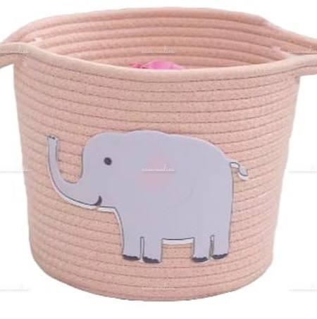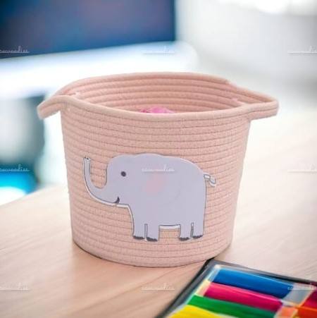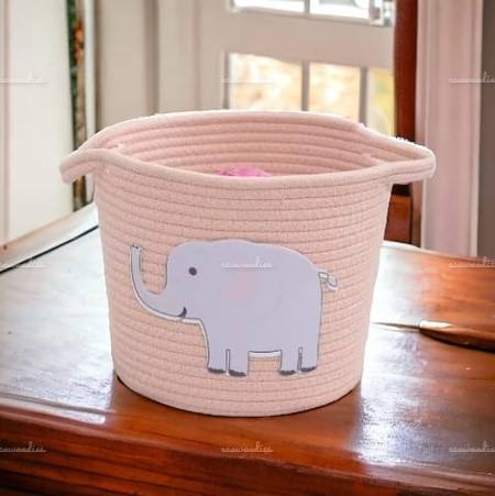 Large Cotton Rope Woven Laundry Basket Embroidered Elephant Basket for Blankets Clothes Toys Pillows Towels Baby Nursery Basket
