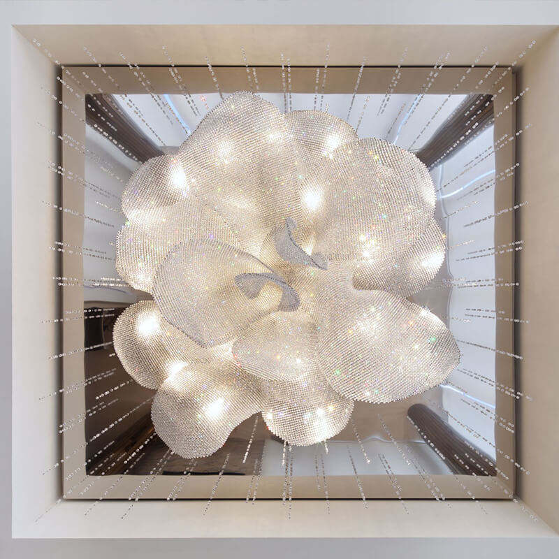 Large Crystal Chandelier Hotel Engineering Custom Pendant Lamp Hand-woven Mesh Flower Lighting