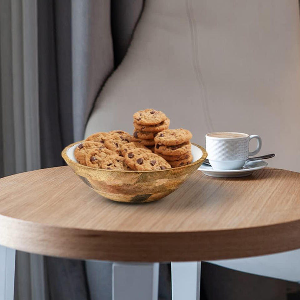 Large Custom Mango Wood Bowl Leakproof Snacks and Charcuterie Serving Decor with Enamel Print Kitchen Counter Accessories