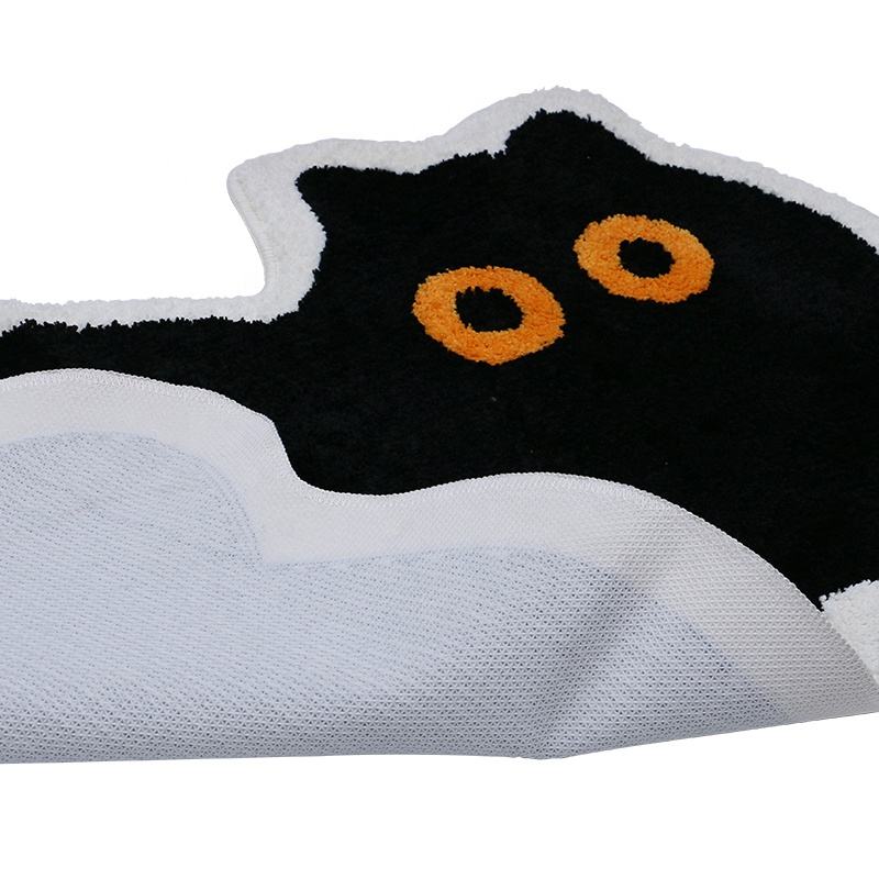 Large Cute Black Cat Wool/Cotton/Acrylic Stain Resistant PET Friendly Non-Slip Decorative Floor Mat Bedroom Area Rugs Sets
