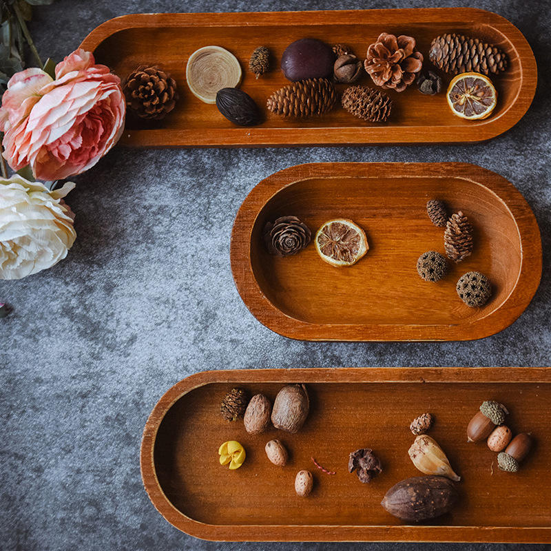 Large Decorative Dough Bowl with Hand-Carved Design Wooden Tray for Candle Display-for Holiday and Father's Day Decor