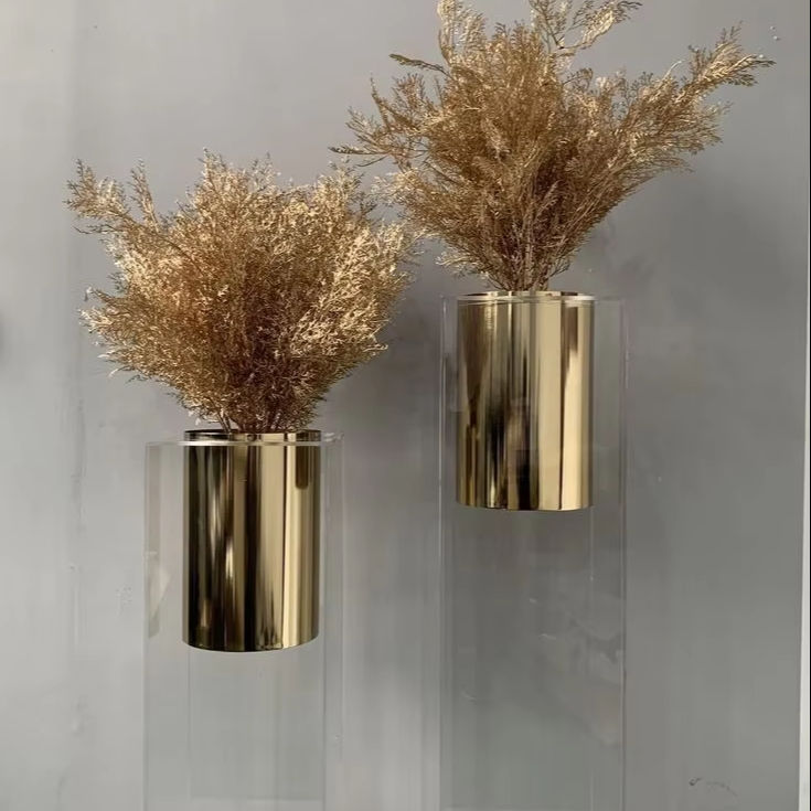 Golden Long And Large Decorative Metal Flower Vase Ideal For Grand Floral Arrangements In Lobbies Or Event Spaces For Floor