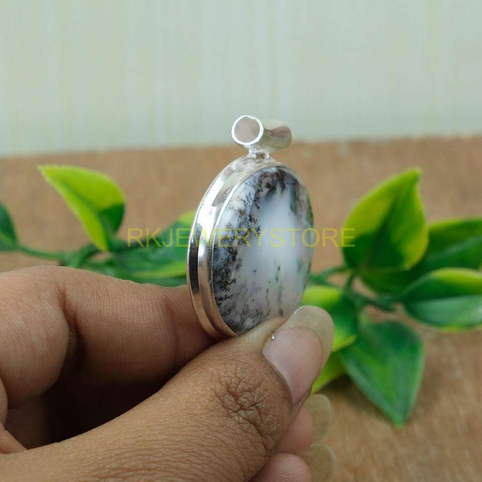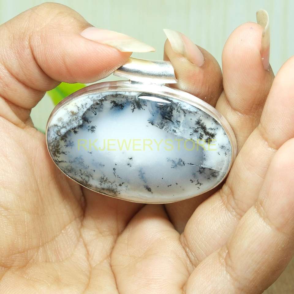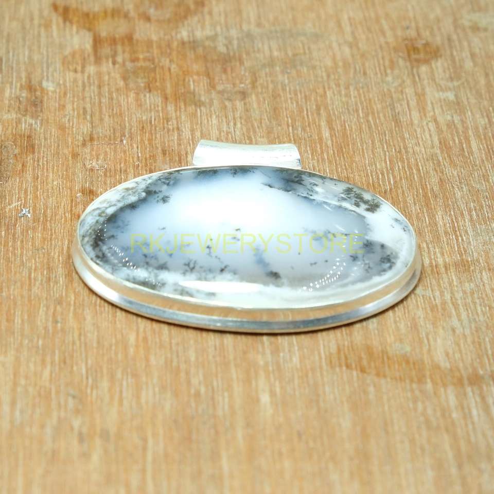 name or words:Oval Cabochon Dendritic Opal Handmade Silver Pendant