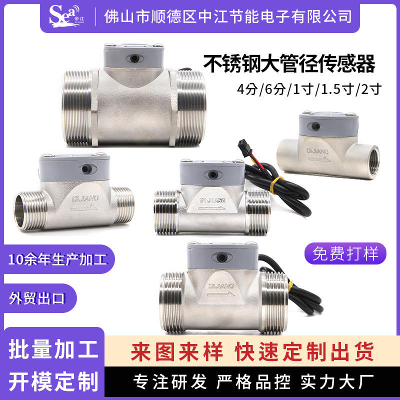 Large-Diameter G3/4 Stainless Steel Water Flow Sensor Wear-Resistant 4-Point Hall Effect Meter for Sewage Pipes 5-Year Warranty