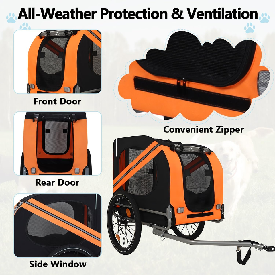 Large Dog Trailer for Bike, Folding Bike Trailer for Dogs with 18.9" Wheels, 120LB Capacity All-Terrain Pet Carrier
