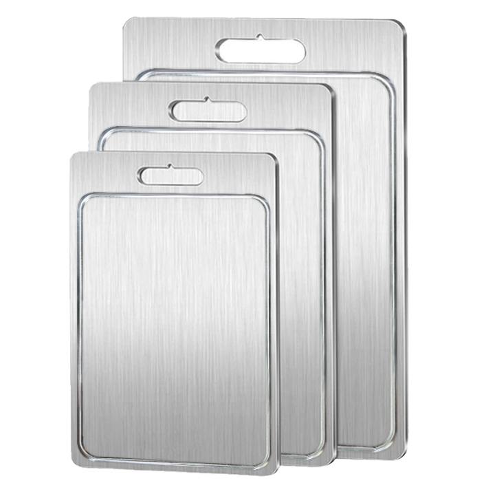 Product name:Double Sided 304 Stainless Steel Cutting Board With Juice Groove