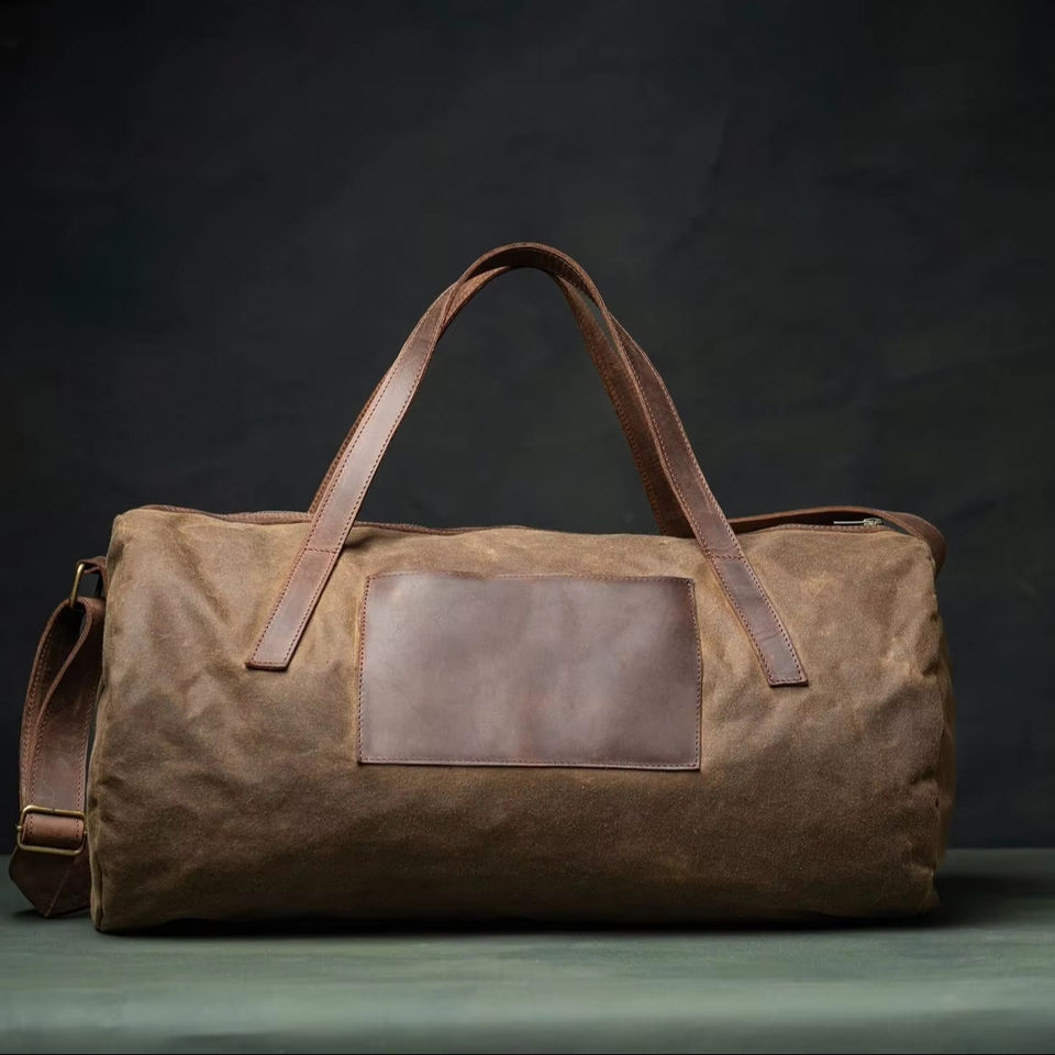 Large Duffel Travel Bag Adjustable Shoulder Strap LCTB-0025 Leather Canvas Overnight Gym Tote Bag Zipper Closure Transparent