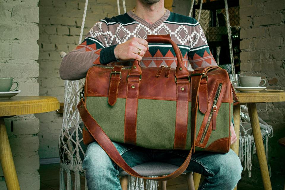 Large Durable LCTB-0091 Travel Bag Fashion Weekender Tote with Waterproof Leather and Canvas Transparent Zipper Closure
