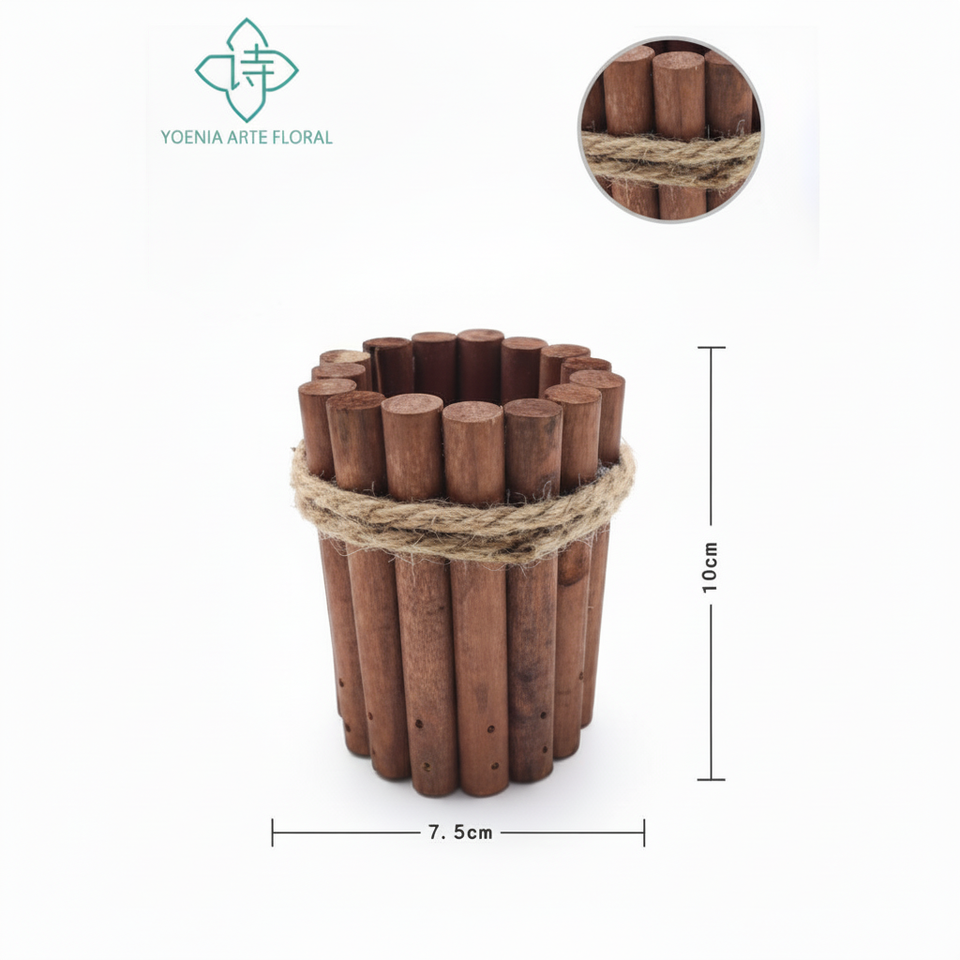 Large Eco-Friendly Glazed Wooden Pot Small Cylindrical Flower Tub for Outdoor Usage with Artificial Flowers Square Pattern