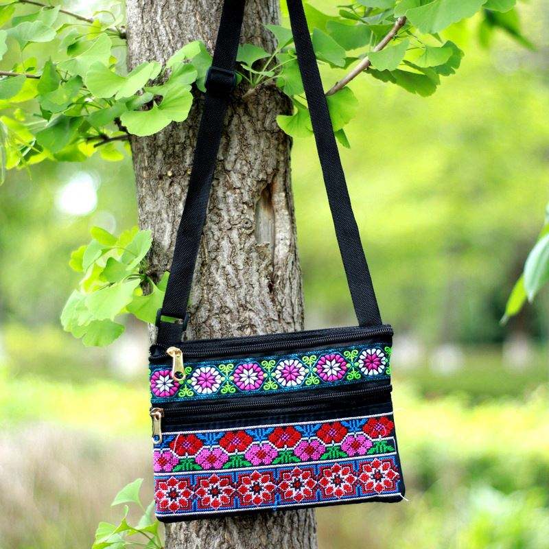 Large Ethnic Style Crossbody Bag for Women Embroidered and Printed Design With Nylon Lining and Shoulder Mini Phone Storage
