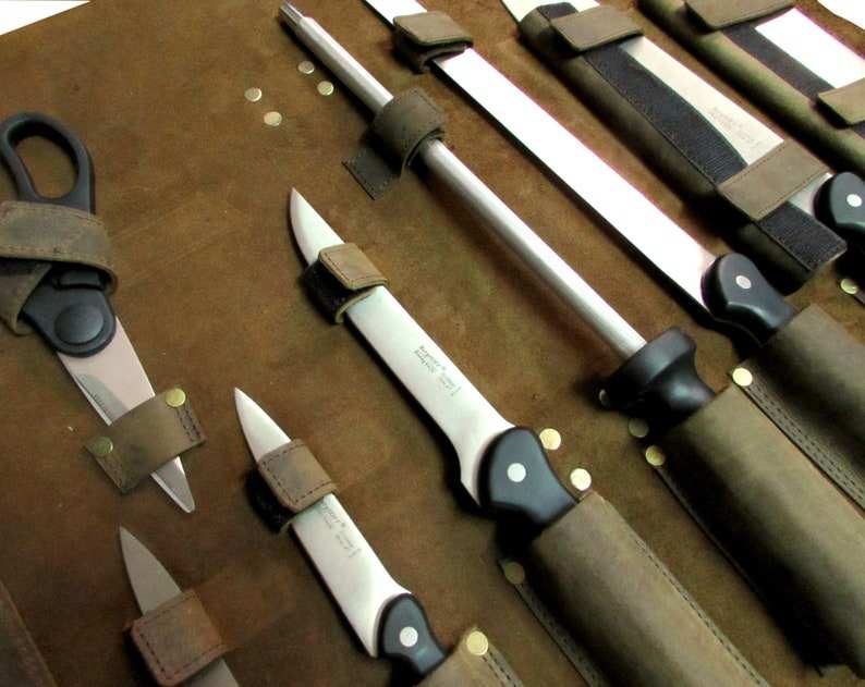 Large Factory Good Quality Supplier Eco-Friendly Genuine Leather Knife Roll Easy Carry Chef Knife Storage Organizer LKR-0208