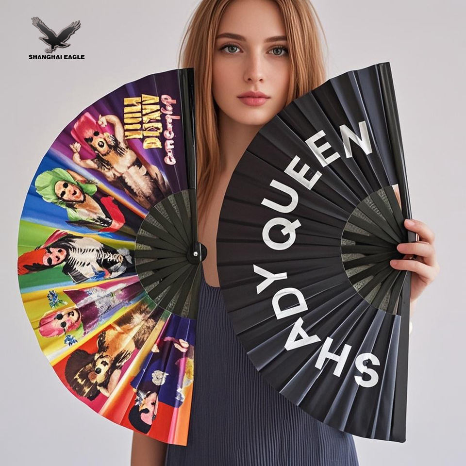 Large Folding Hand Fan Kung Fu Tai Chi Fan Handmade Plastic for Dance with Metal Rivets Chinese Nylon White Bamboo Portable