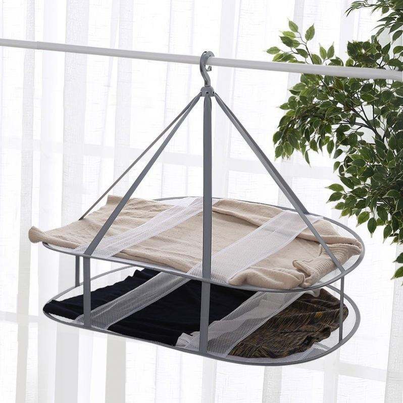 Large Folding Laundry Drying Rack Fold Flat Dry Hanger for Indoor Outdoor Polyester Dryer Mesh Belt
