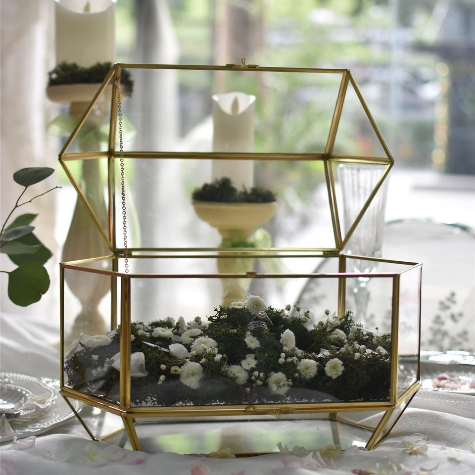 Large Geometric Glass Card Box Wedding Keepsake Recipe Reception Card Envelope Holder Display Gift Card Box with Swing Lid NCYP