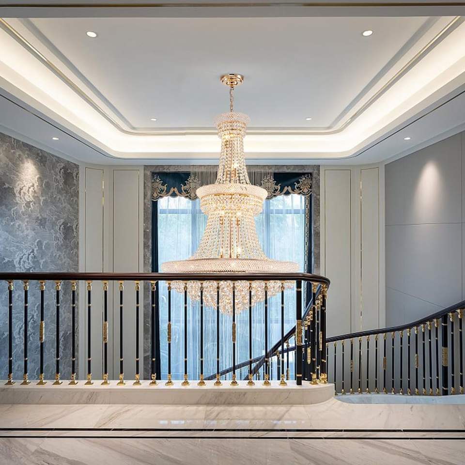 Large Gold Crystal Chandelier Light - Diameter 31.5", 3 Layers Ceiling Chandeliers, Pendant Lighting for Living Room