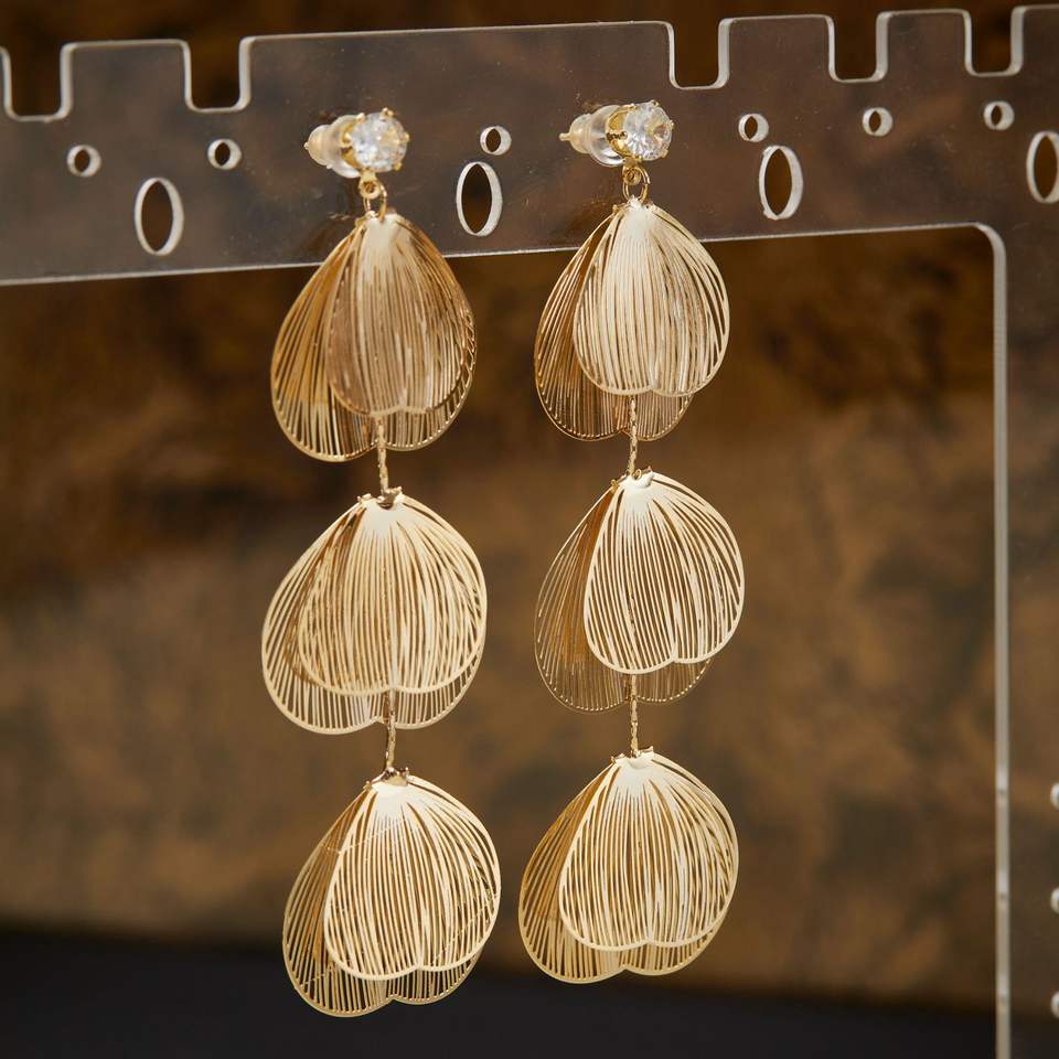 Large Gold Flower Earrings Exaggerated Cascading Floral Dangle Long Earrings Shoulder Dusters Fashionable Huge Earrings