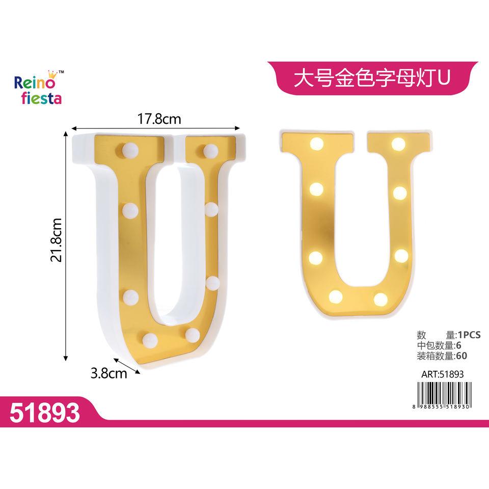 Large Gold Letter U LED Light for Party Battery-Free Product