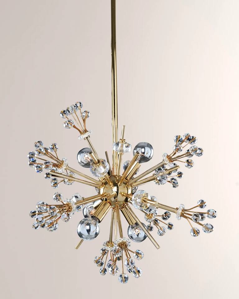 Large Gold Sunburst Crystal Chandelier, Statement Lighting for Living Rooms
