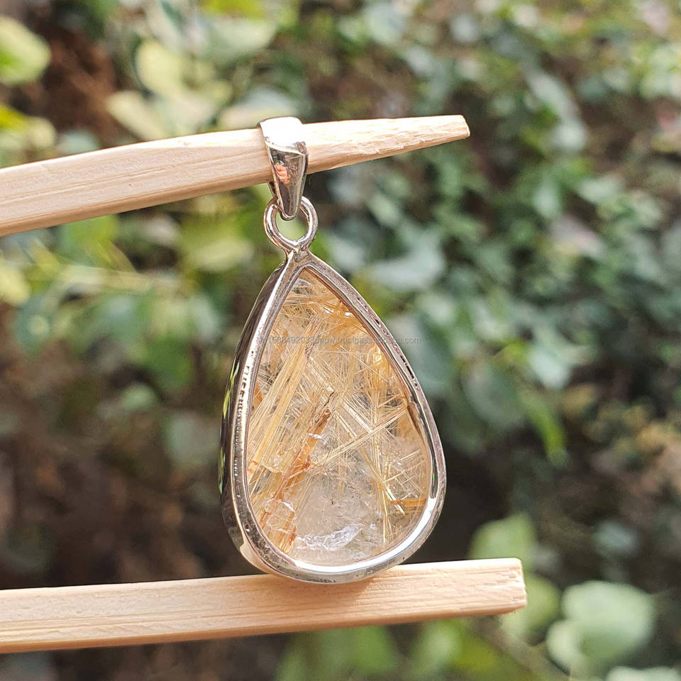 Product Name:Natural Golden Rutilated Quartz 925 Silver Pendant for Necklace