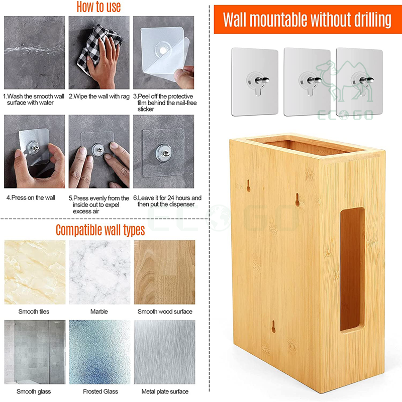 Wall Mount Bamboo Garbage Bag OrganizerStyle