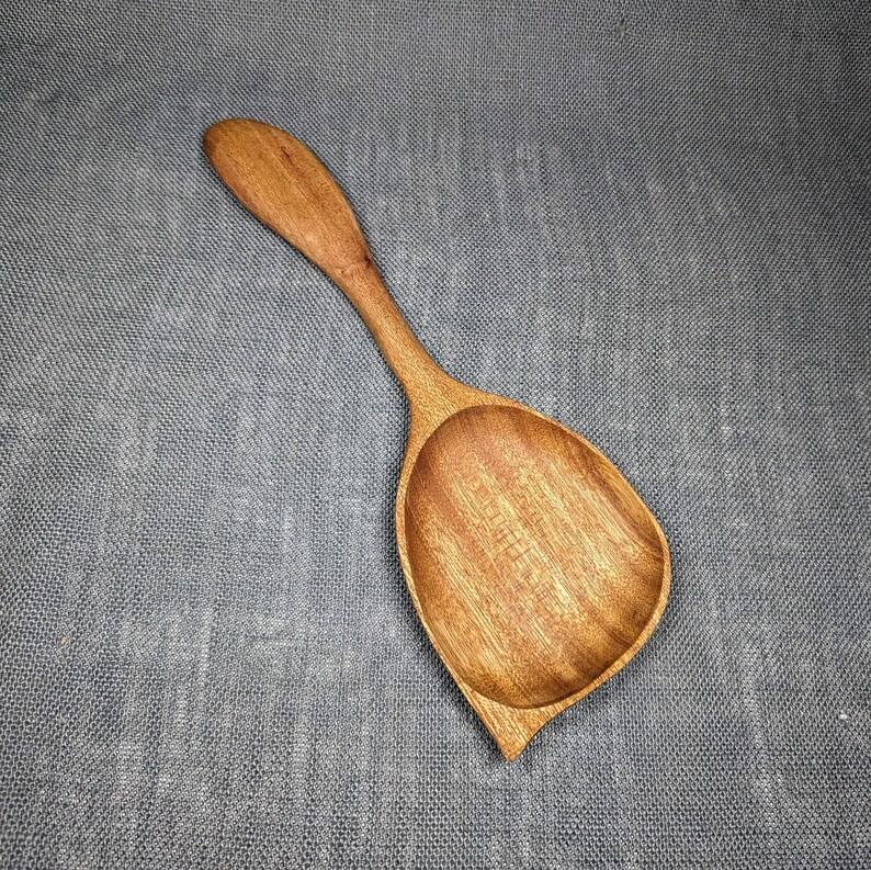 Large Hand Carved Mahogany Wooden Cooking Spoon Classic Design Style Serving Stirring Ladle Soups Stews Rustic Witch Cauldron