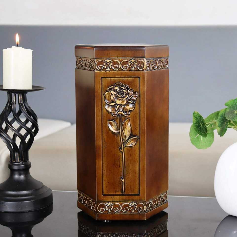 Large Hand-Engraved Rose Flower Design Wooden Cremation Urn for Adults Memorial Urn for Mom or Dad for Ashes