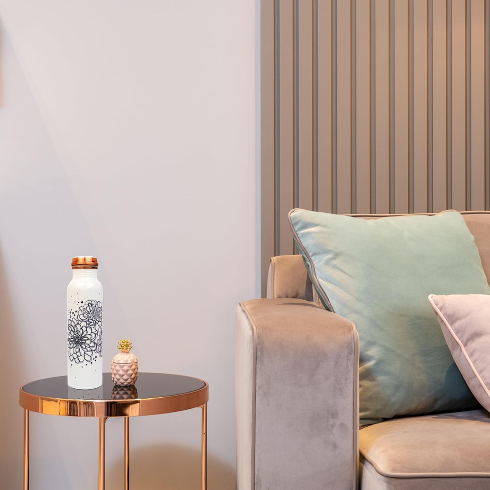 Large Handcrafted Copper Drinkware Pure Copper Water Bottle with Straw Lid Custom Printed Design Bamboo Material Daily Drinking