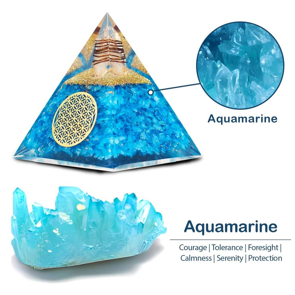 Large Handmade Aquamarine Crystal Orgone Pyramid for Manifestation Meditation and Positive Vibes