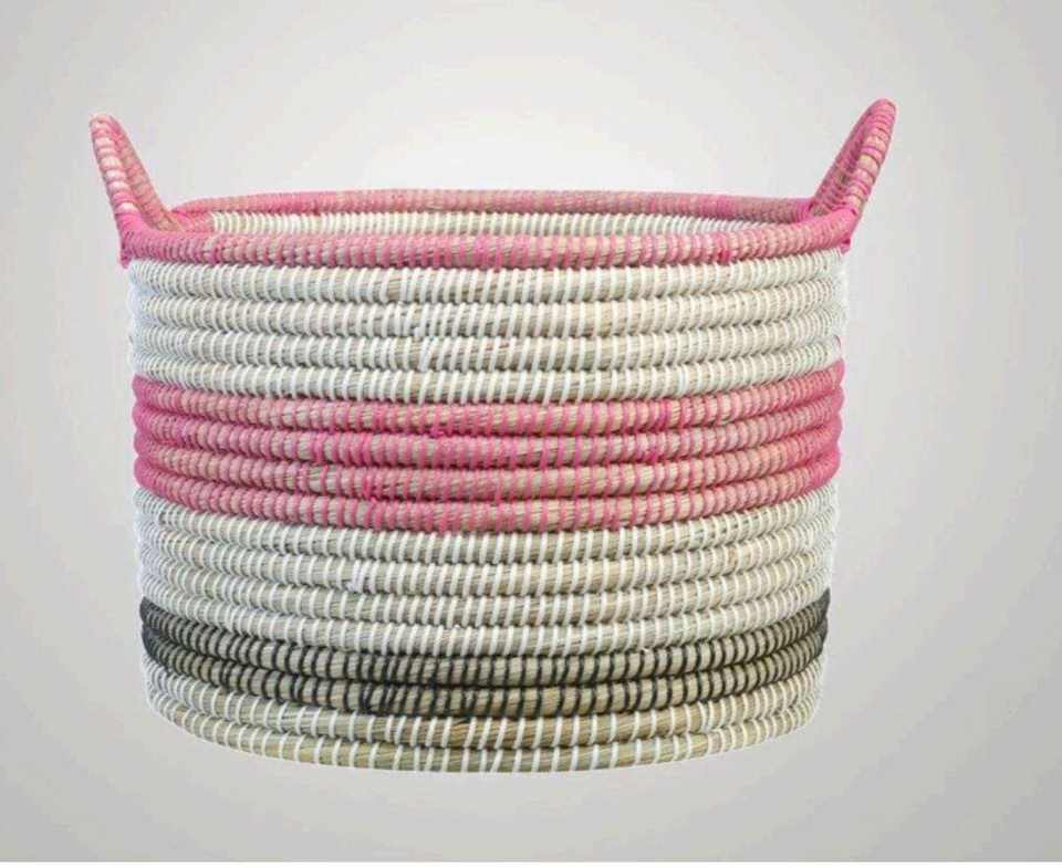 Large Handmade Seagrass Decorative Storage Basket with Ring Handles Woven Organizer for Kids' Storage