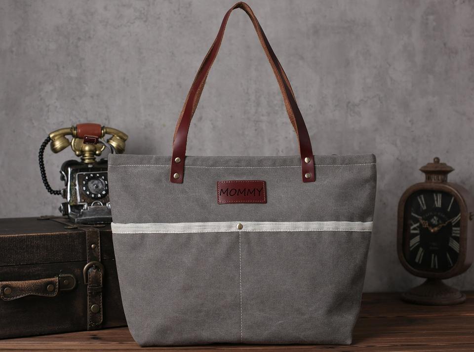 Large Handmade Stylish Waxed Canvas Tote Bag with Leather Straps Durable Capacity Work Office School Travel LCT-0126