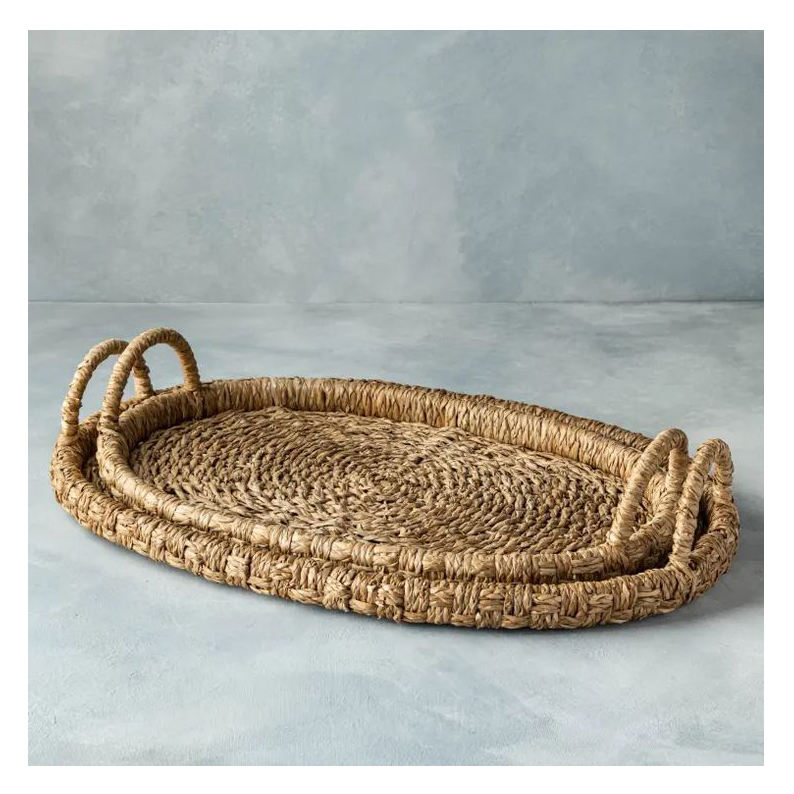 Large Handwoven Rattan & Jute Rope Serving Tray Durable Sustainable and Stylish Decor for Modern Rustic and Coastal Homes