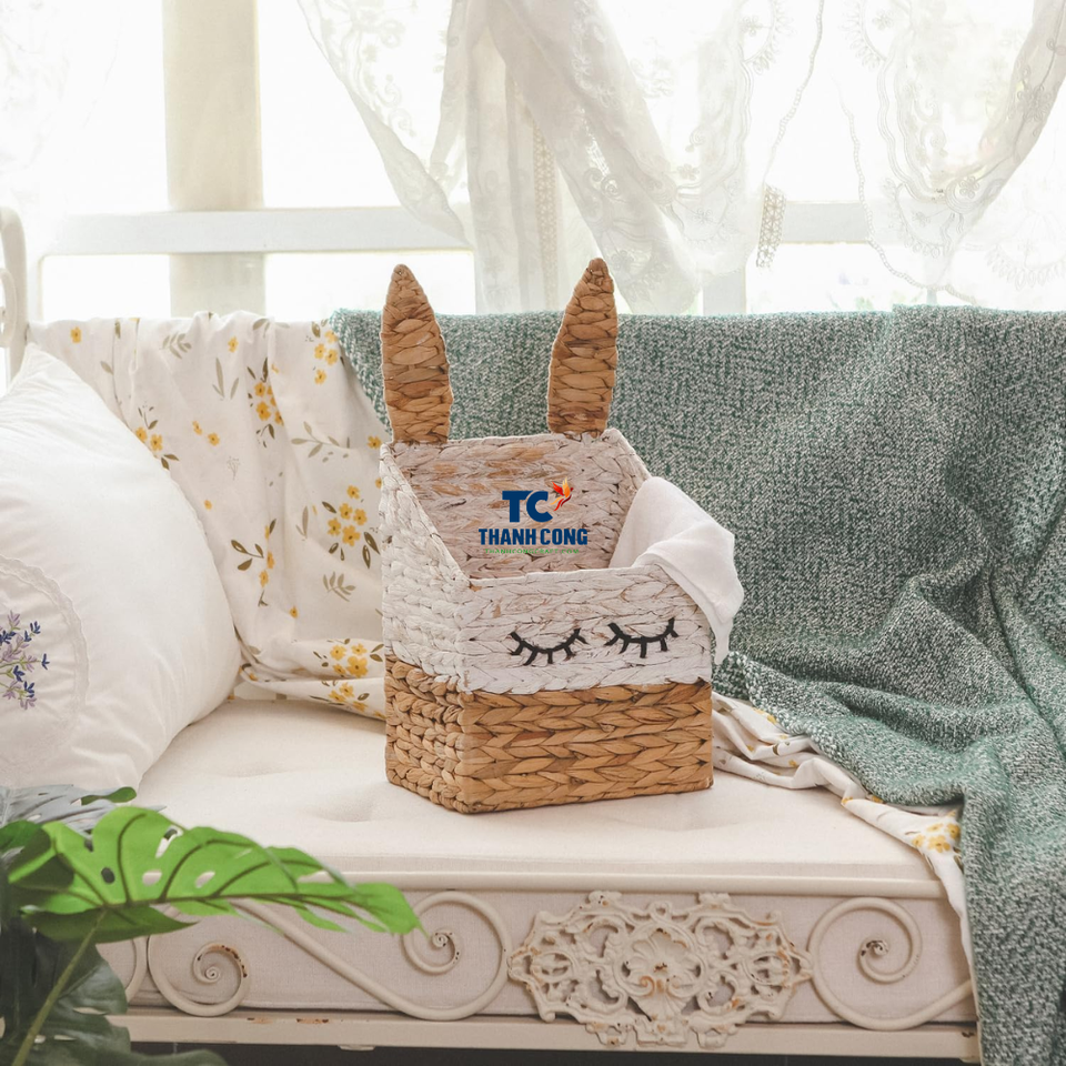 Large Handwoven Water Hyacinth Laundry Basket with Cute Rabbit Design for Kids' Room Kitchen Bathroom Wardrobe-from Vietnam