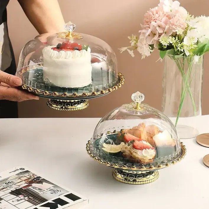 Large Iron Cake Stand with Dome Unique Design for Multi Layer Cakes and Cupcakes for Cake Presentation During Festive Gatherings