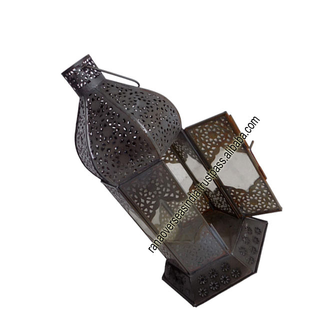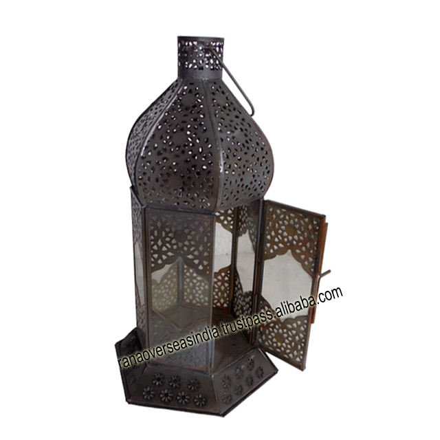 Large Iron Candle Lantern in Hexagonal Shaped Decorative Candle Lantern for Christmas Wedding and Party Decoration