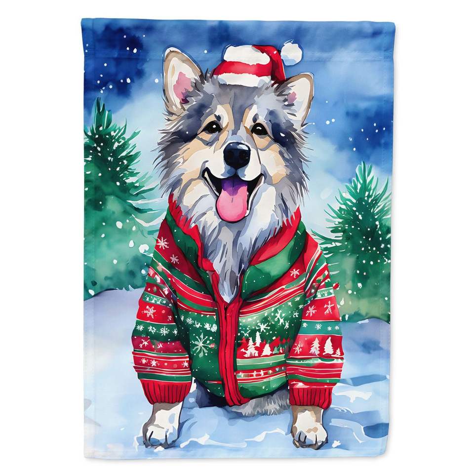 Large Keeshond Christmas House Flag Porch Sleeve Pole Decorative Yard Banner Artwork Multicolor Polyester Wall Decorations